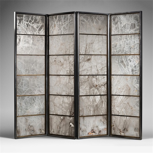 新中式带磨砂玻璃现代不锈钢屏风隔断