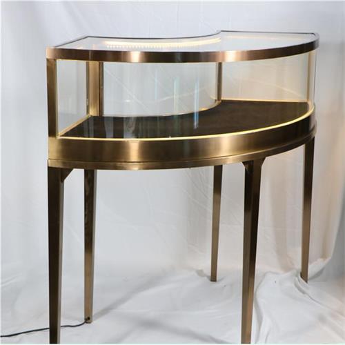 不锈钢展柜设计定做厂家为您展示的是2020新款玉器翡翠珠宝首饰不锈钢烤漆玻璃异形展柜