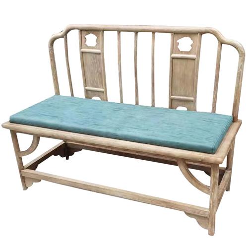 茶楼酒店榆木皮艺软包双人椅休息椅图