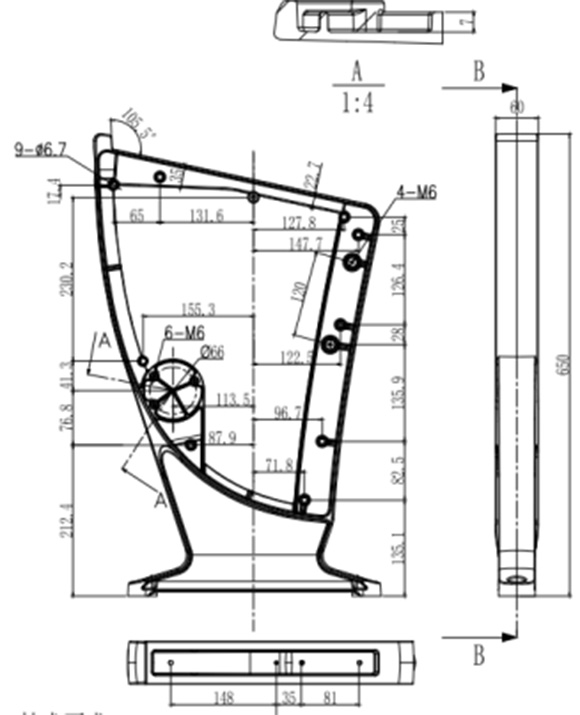 铝合金站脚外观及尺寸 :