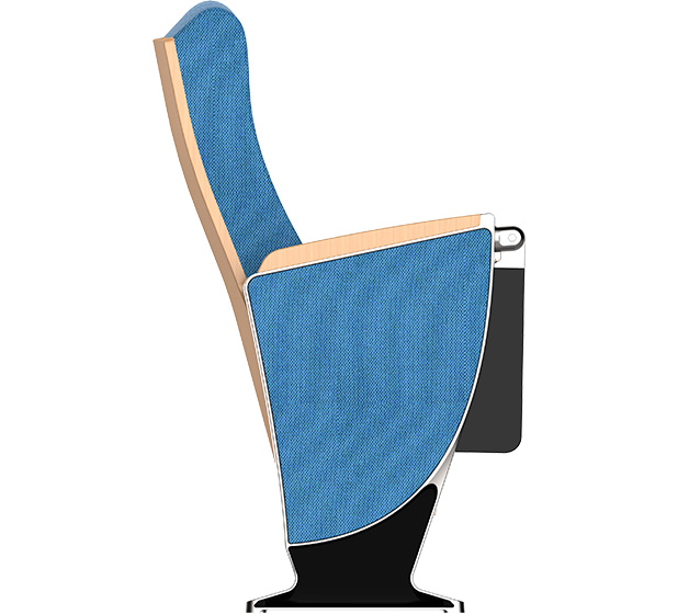4.下藏式写字板:写字板链接铝头、托板采用优质铝合金材料经模具一体压铸成型。写字板面板采用ABS复合材料经模具一体注塑成型,写字板固定方式为机械原理高强度螺栓,使写字板链接部位越用越结实,不会出现松弛现象,尺寸规格:长度为381.2±2mm,宽度为261.2±2 mm,厚度为45mm;扶手和写字板向上倾斜6.5度保证书写自然状态,写字板打开回收时需带消音功能,不可有反弹力与噪音出现。