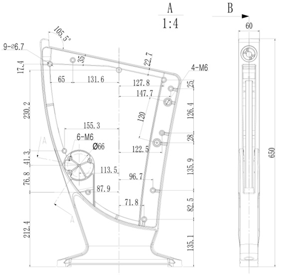 铝合金站脚尺寸及工艺技术要求: