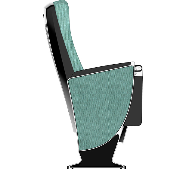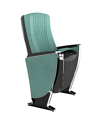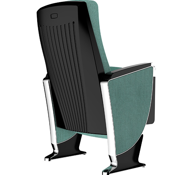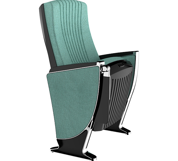 4.写字板:下藏式写字板:写字板链接铝头、托板采用优质铝合金材料经模具一体压铸成型。写字板面板采用ABS复合材料经模具一体注塑成型,写字板固定方式为机械原理高强度螺栓,使写字板链接部位越用越结实,不会出现松弛现象,尺寸规格:长度为381.2±2mm,宽度为261.2±2 mm,厚度为45mm。扶手和写字板向上倾斜6.5度保证书写舒适自然状态,写字板打开回收时需带消音功能,不可有反弹力与燥音的出现。力学性能通过相关家具产品质量检验中心QB/T2602-2013《影剧院公共座椅》的相关检测依据,写字板静载:300N。